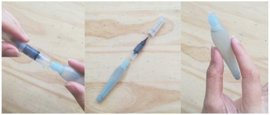 Cuando quieras usarlo, solo tenés que abrir en forma de rosca el cartucho y rellenarlo de agua. Luego presionas un poquito en su “pancita” para que el agua empiece acorrer por su interior hasta llegar a humedecer las cedas de tu pincel. Una vez húmedo, lo usas para pintar como lo harías con cualquier pincel nada más que, esta vez, en vez de tomar agua de tu frasco ya la tenés en tu pincel.