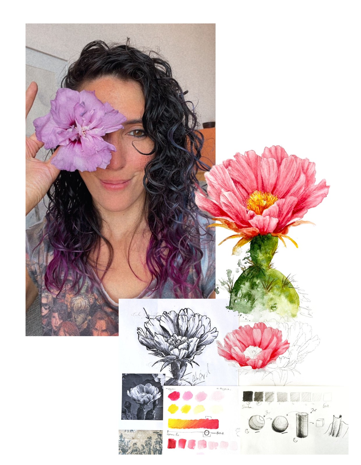 Me especializo en el arte botánico, en la exploración de las plantas, en mirar a la madre naturaleza con ojos llenos de magia y disfruto mucho ayudando a otras personas a lograr plasmar la belleza de las flores en hermosas obras de acuarela.